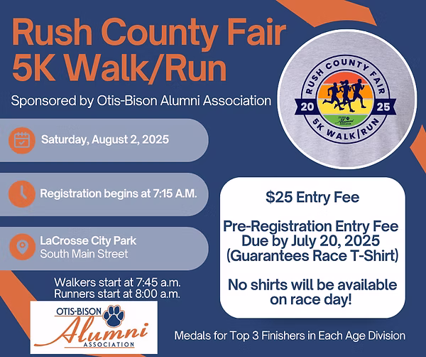 *Registration begins at 7:15 a.m. in the shelter at the LaCrosse City Park, South Main Street, LaCrosse, KS.
